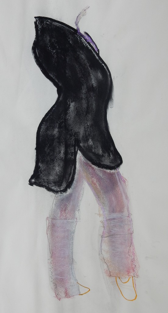 Modeltekening. Softpastel en viltstift en syberisch krijt op schetspapier.