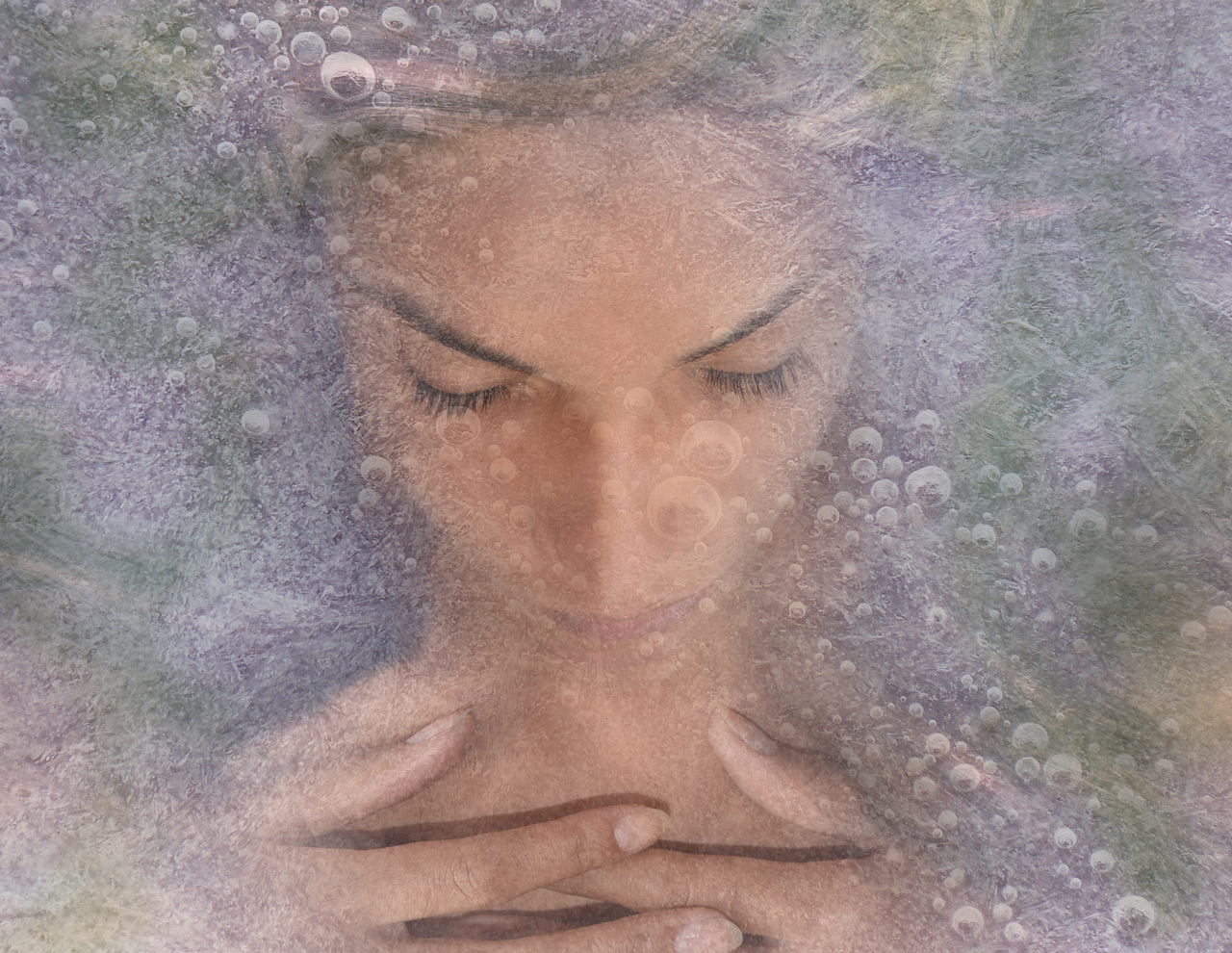 Wit Vrouw Water Ogen Lucht Ijs Luchtbellen Dicht Grij