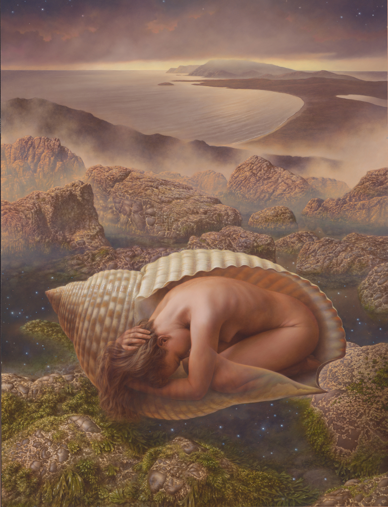 Nude Surrealisme Schelp Realisme Realism Shell Fijnschilderen Embryo Sea Spiritual Fineart Kustlijn Keltisch Celtic Coastline Surealism Phoetus Zee Spiritueel Vrouw Naakt Woman