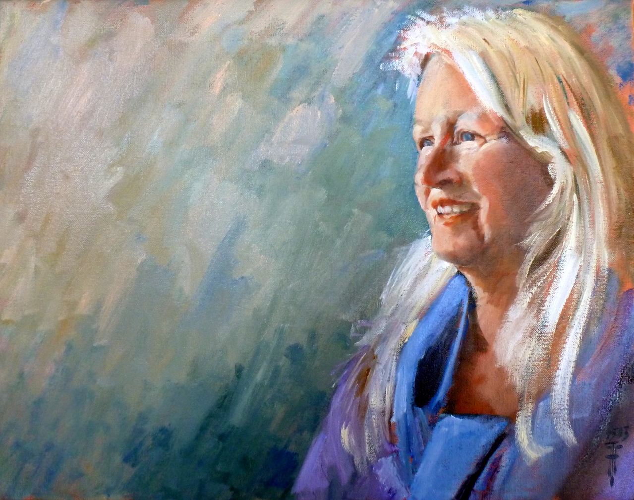 Blauw Portret Olieverf Linnen Gaby