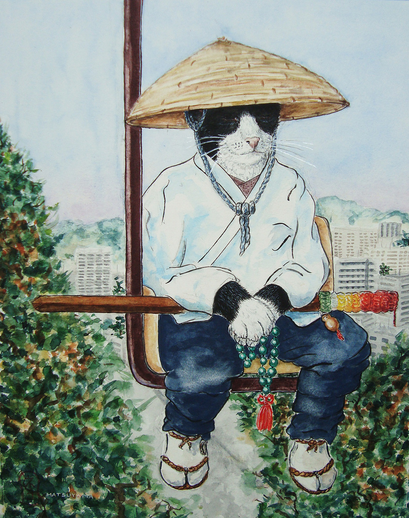 Arie de Jong (Alkmaar, 1961) verbindt in haar werk haar passie voor katten met haar interesse voor de Japanse cultuur en (krijgs)geschiedenis.