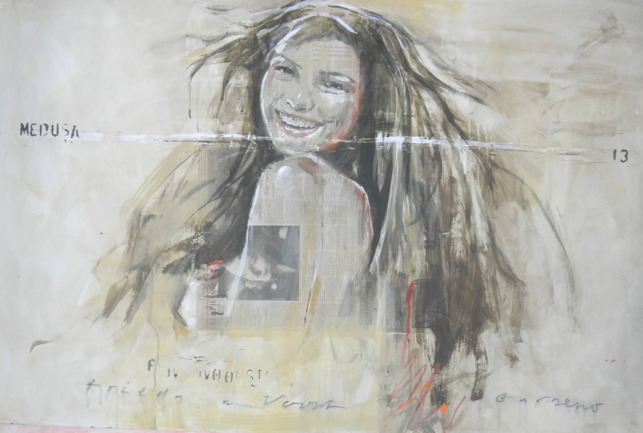 Ik woon en werk in Noord Italie,in het bergdorp Garzeno boven het Como-meer. Mijn schilderijen kenmerken zich door een combinatie van figuratie en abstractie. Grafische elementen, foto's, tekst,collages van stukken krant vormen een essentieel onderdeel van de totale compositie.