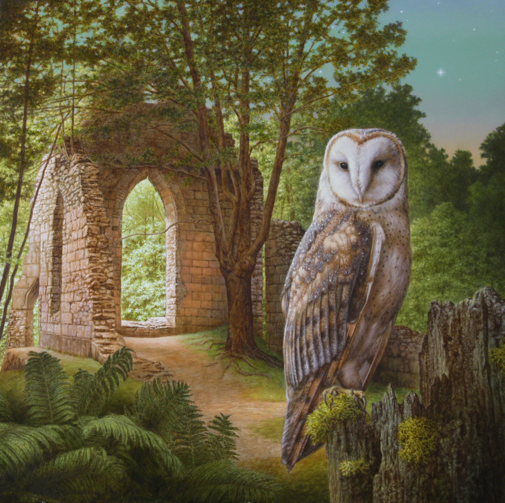 Uil Owl Poort Gate Trees Bomen Inwijding Initiation Totem Shamanism Sjamanisme Vogel Bird Fineart Fijnschilderen