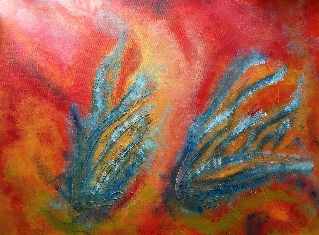 Abstract schilderij in warme vlammende kleuren.