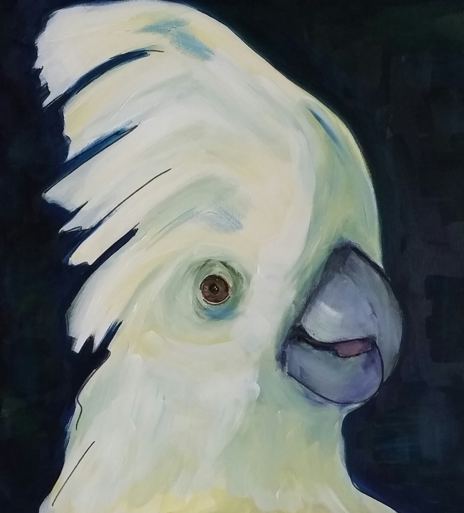 een prachtige vogel vind ik de kaketoe, en is dan ook fantastich om te kunnen schilderen.