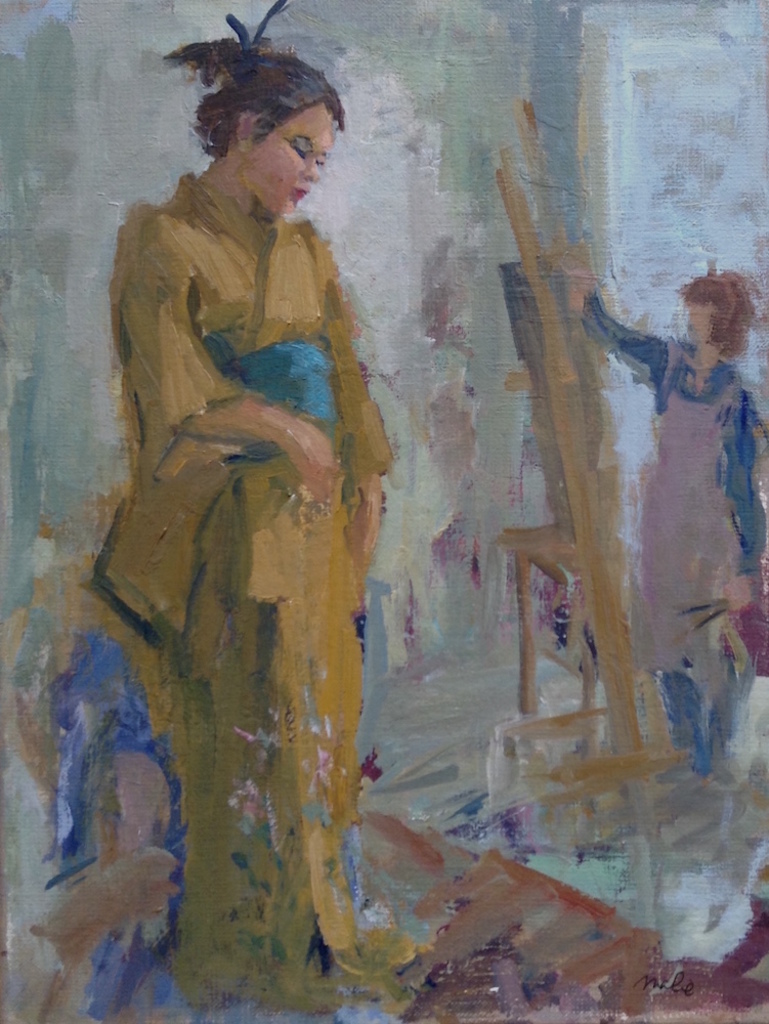Te koop. Model geschilderd in een atelier. Zonder lijst.