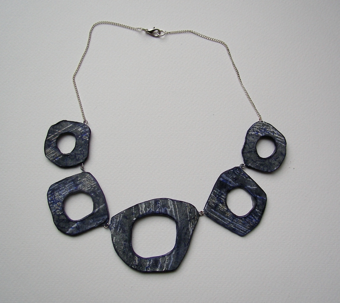Willy Keuvelaar (1949) was 30 jaar activiteitenbegeleider en daarom gewend iets te creëren met gebruikmaking van materiaal dat voor handen is. Na de de creatieve opleiding voor activiteitenbegeleider volgde ze ieder jaar een andere cursus op creatief gebied. Vaak weer uitkomend bij etsen en boetseren. Zij werkt geregeld in de grafische werkplaats van de SKVR . Tijdens het etsen blijft er vaak een ets liggen die niet helemaal aan de eisen voldoet. Zonde van het mooie papier en de grafische afbeelding. Zo ontstond het idee om er sieraden van te maken. Door een speciale verlijming en een coating zijn de sieraden stevig als hout en watervast. Haar PET fles sieraden geven de illusie dat er iets gedaan kan worden aan de plastic soep. PET flessen worden in de fabriek met warme lucht opgeblazen.