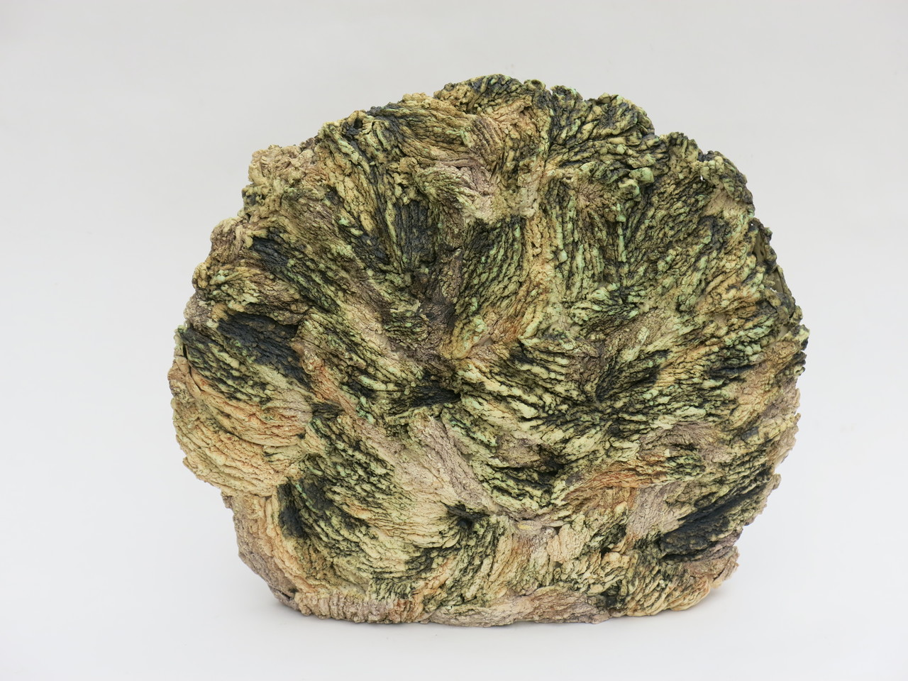 Beweging en verbinding. Object gemaakt van grove chamotteklei met oxides.