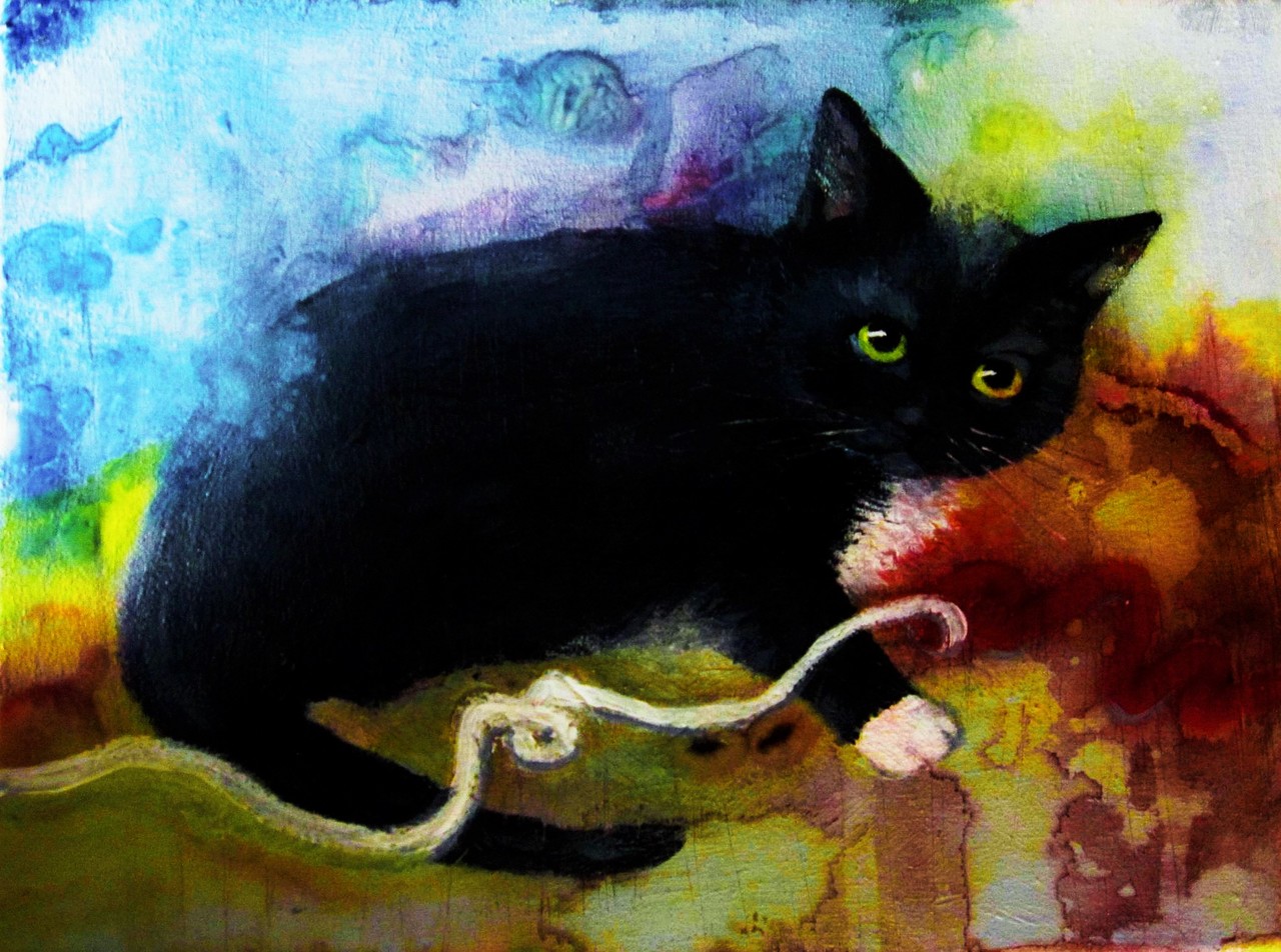 Wit Zwart Zwarte Dieren Dier Kat Kunst Painting Poes Poezen Cat Katje Cats Jarig Animal Kerst Kattenschilderij Kunstkaart Beterschap