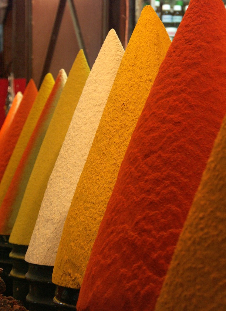 Gekleurde kruiden op de markt in Marakech, Marokko. Afgdrukt op alu-dibond. Oplage: max. 5 stuks. Andere afmetingen en ondergronden zijn mogelijk.
