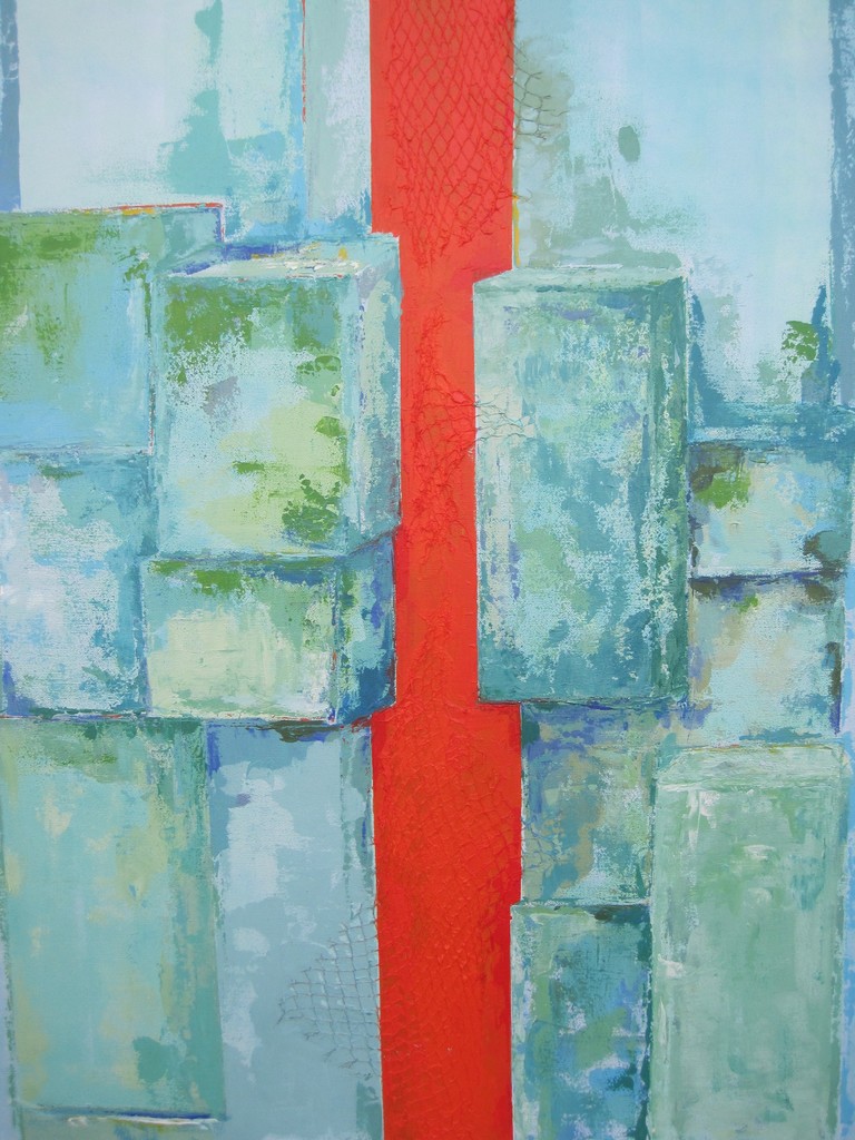 Schilderen met acryl en paletmes. Meeste schilderijen ontstaan vanuit innerlijk beeld, indruk of tekst.