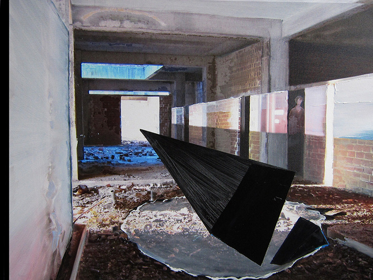 Op het eiland Lesbos is een op de twee panden nooit afgenomen en dus voor de bloei tot verval geraakt. Onderzoek was hoe ik in een bewerkte foto van een concrete omgeving een abstracte vorm kon schilderen die een onverwachte dimensie toevoegde aan het beeld.