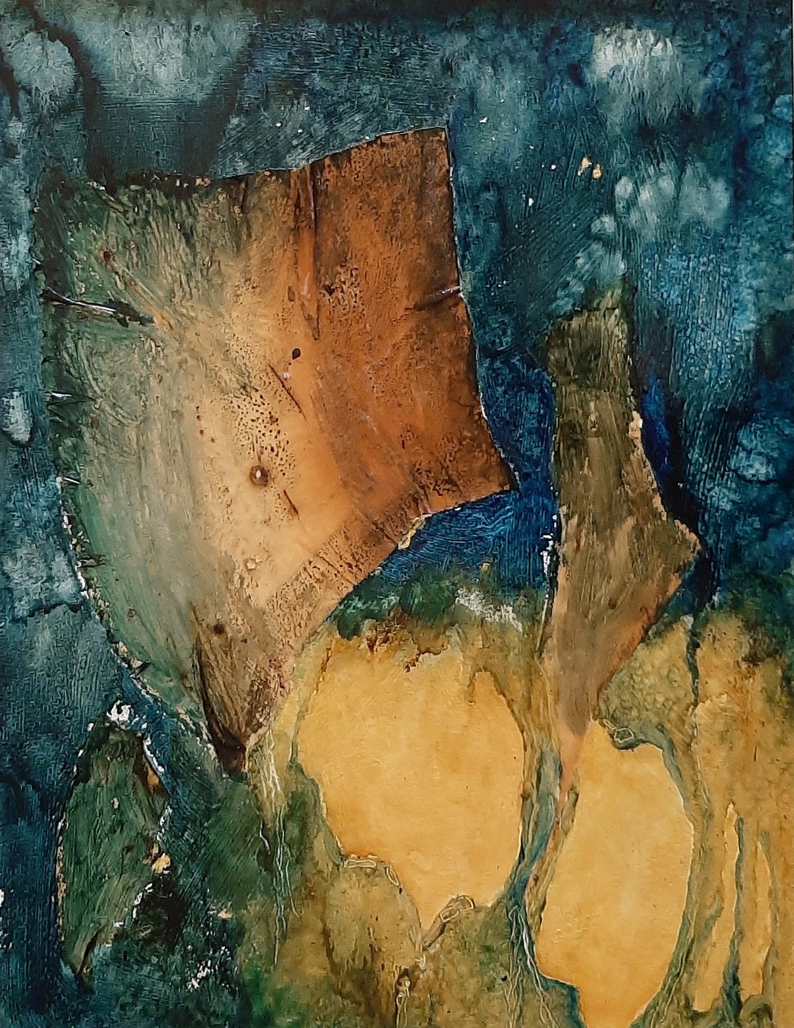 In de zomer van 2016 bouw ik mijn reeks A Space Odyssey verder uit. Nu neem ik als uitgangspunt teksten van numers uit de popmuziek. Na Major Tom van David Bowie, een nummer dat me inspireerde tot het maken van de serie Floating Weightless, neem ik nu de titelsong van de Bondfilm Skyfall als uitgangspunt. En dan met name de gepassioneerde vertolking ervan door de zangers Adèle: SKYFALL dus. Het zal opnieuw een soort drieluik worden, hoewel de werken ook afzonderlijk heel goed tot hun recht komen. Skyfall 3 krijgt als titel mee: WHEN IT CRUMBLES When it crumbles We will stand tall Face it all together