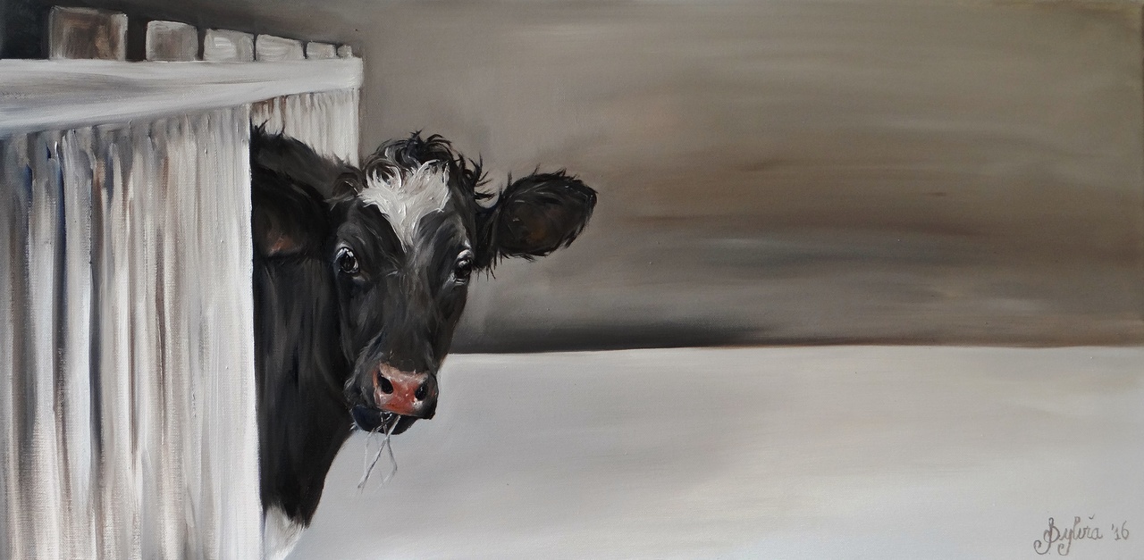 Koe Vache Portrait Passie Cow Black White Sylvia & Stal Heeren Schilderenmetpassie