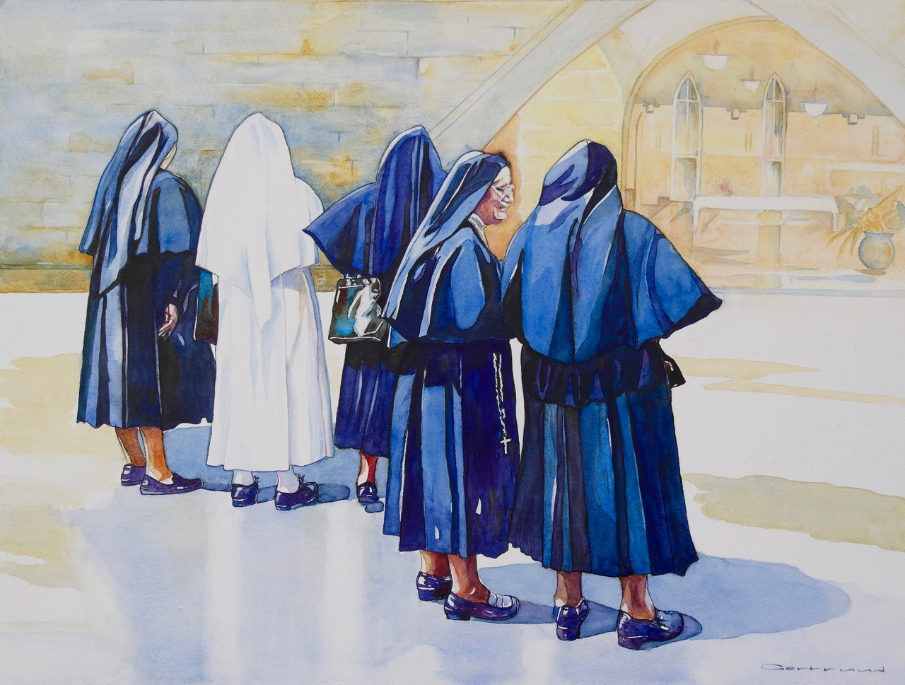 Geel Blauw Aquarel Nonnen