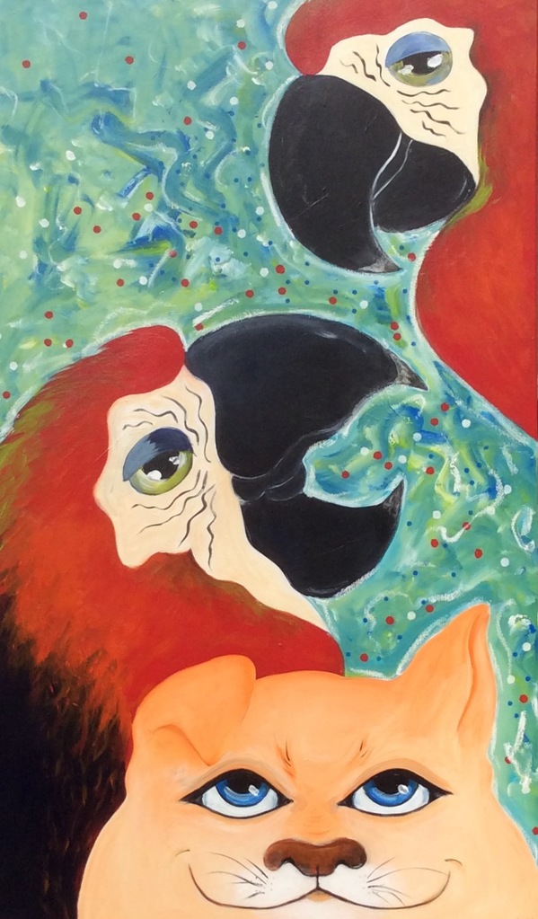 Papegaai en kat in gesprek