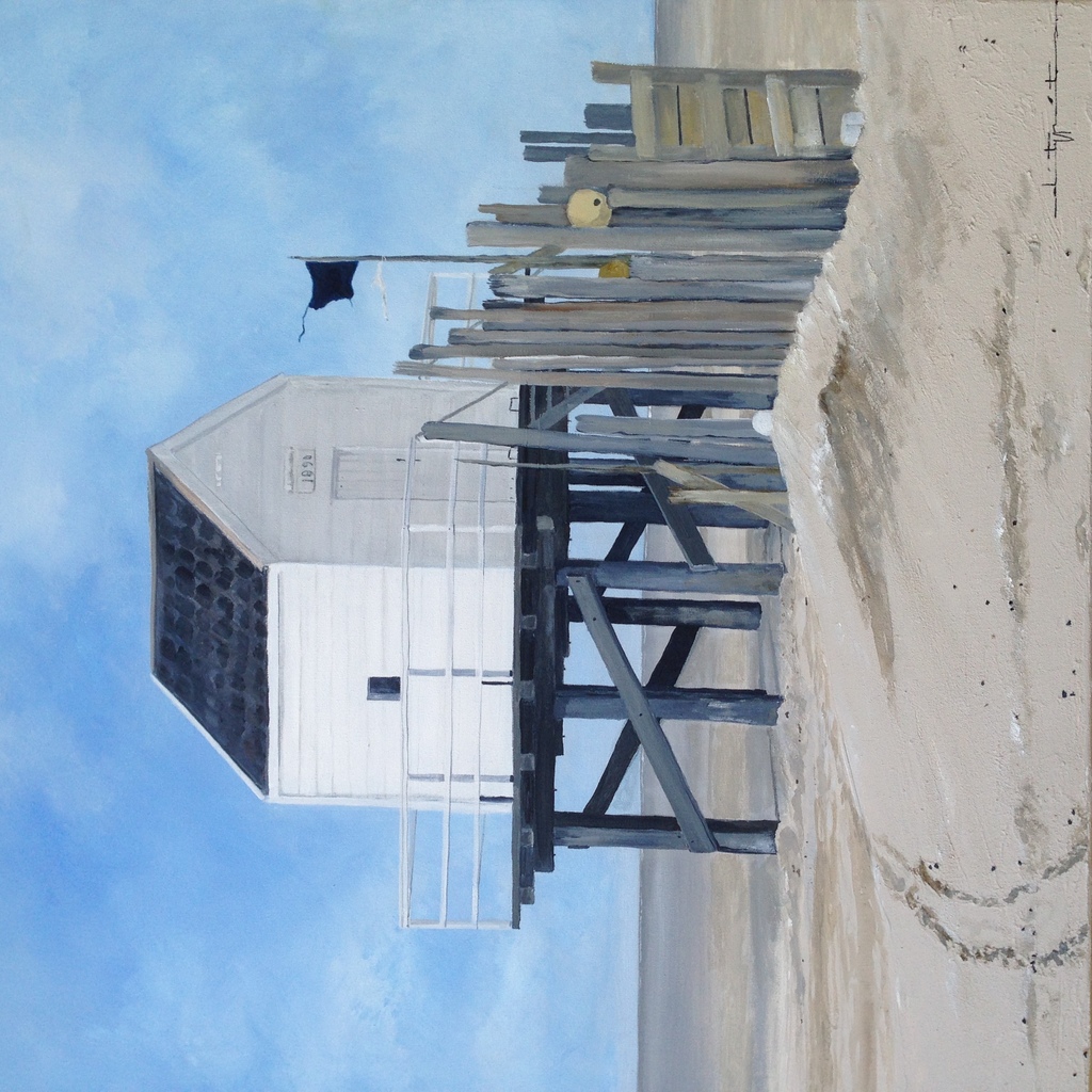 Strand Blauw Acryl Zand Huisje Vlieland Drenkelinghuis