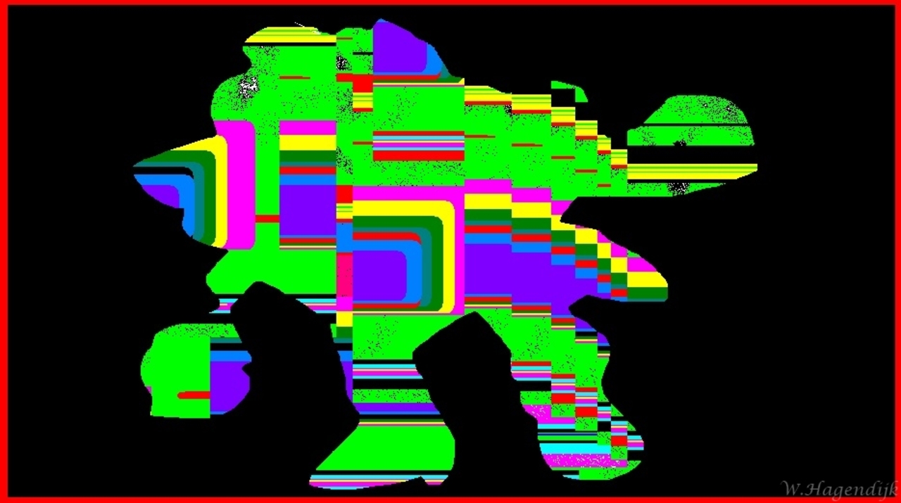 Computertekening abstract digital art. De rode randen aan de zijkanten van de tekening horen bij de tekening.