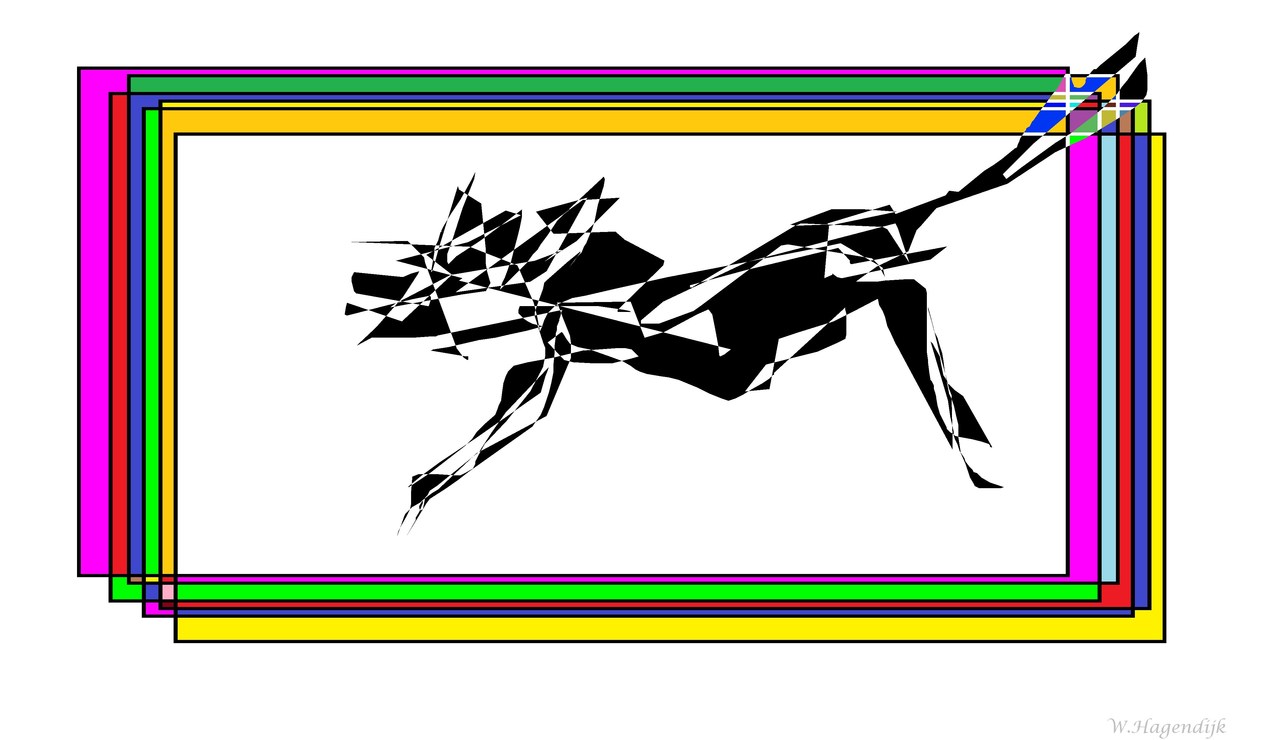 Computertekening abstract digital art. Lijst behoort bij de tekening.