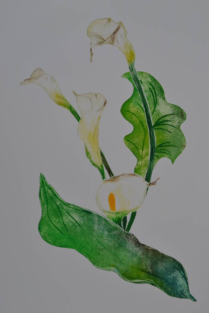 Calla VII - droge naald en aquatint - uitgezaagde zinkplaatjes - meerkleuren druk - oplage 1/1