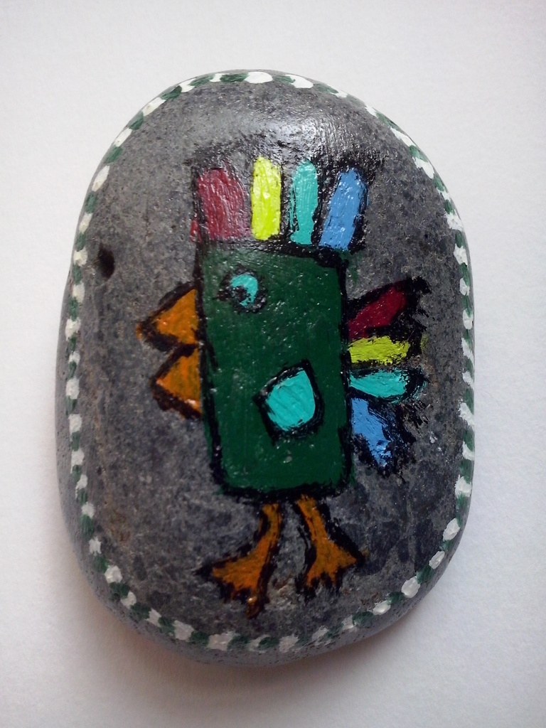 steen beschilderd met acrylverf en afgelakt
