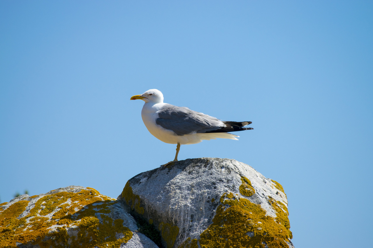 Meeuw op een rots met uitzicht over de Atlantische Oceaan (Galicia, Noord-west Spanje)