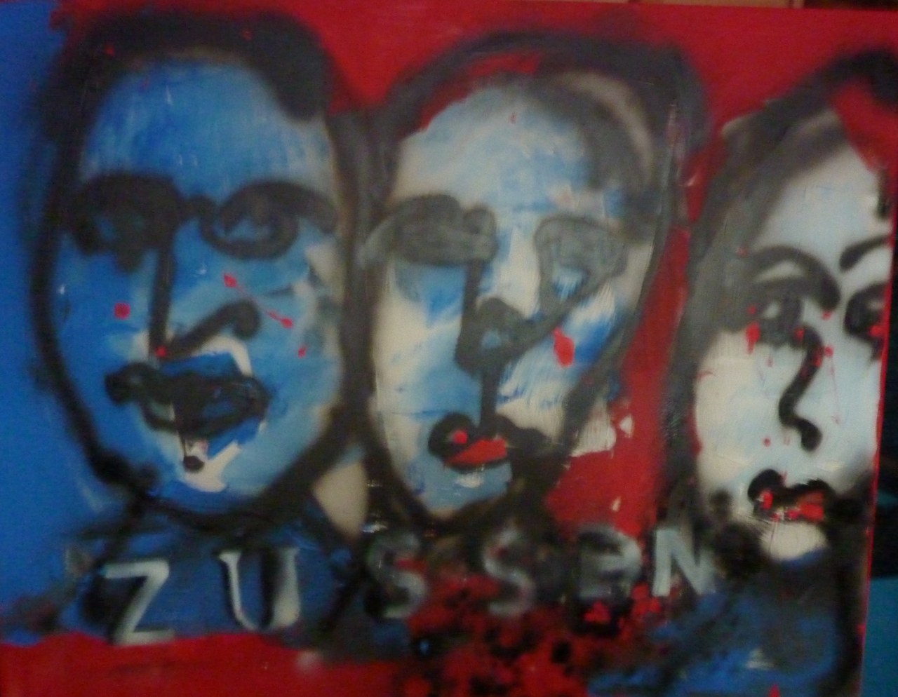 3 zussen op doek gespoten en bewerkt met acryl