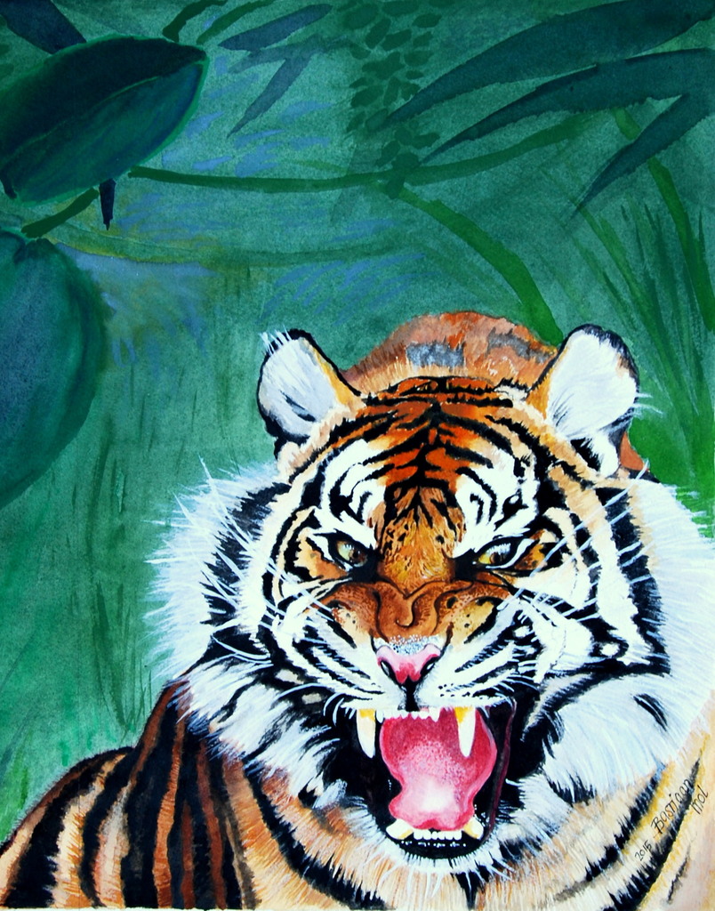 Figuratief Wildlife Dieren Kat Aquarel Natuur Tijger Cat Tiger Animal Watercolors