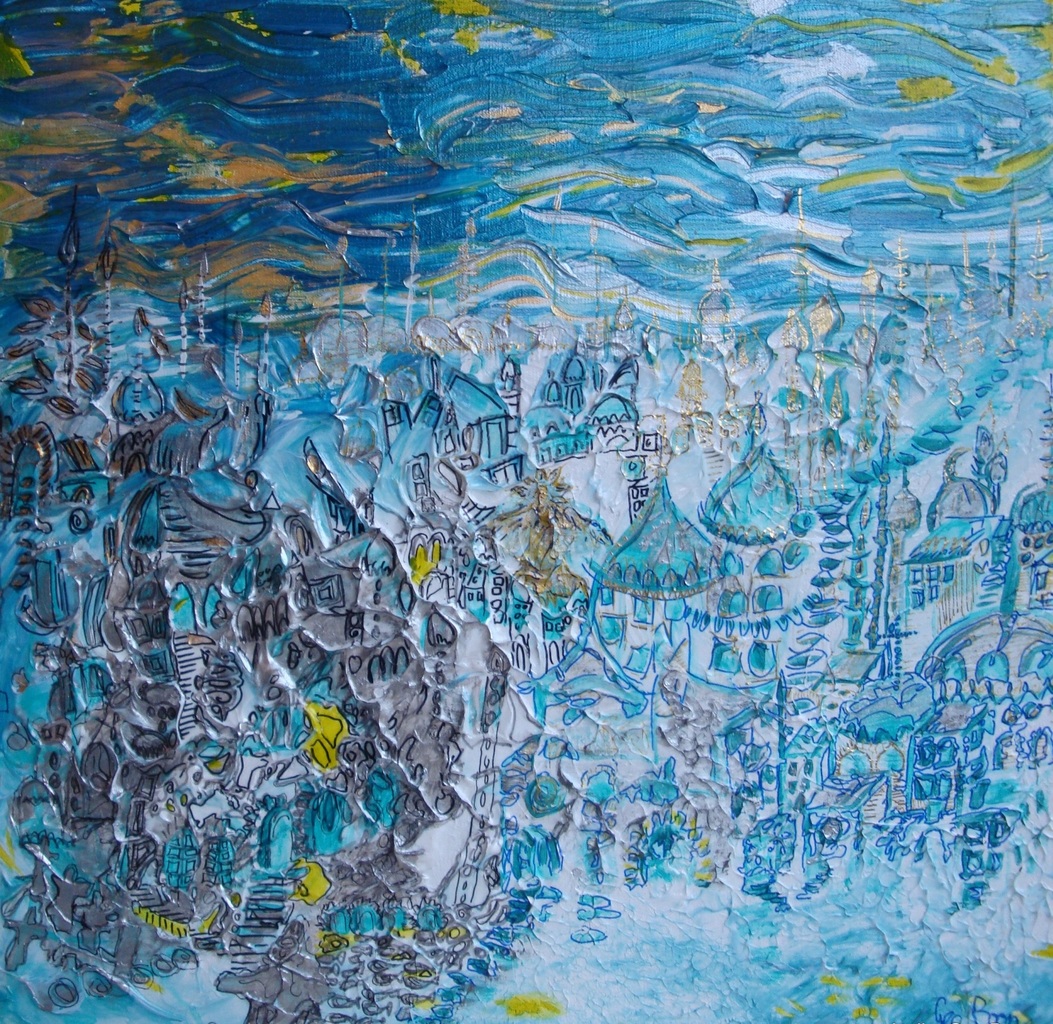 Painting Stad City Bleu Baluw Gea Boon Schikderij