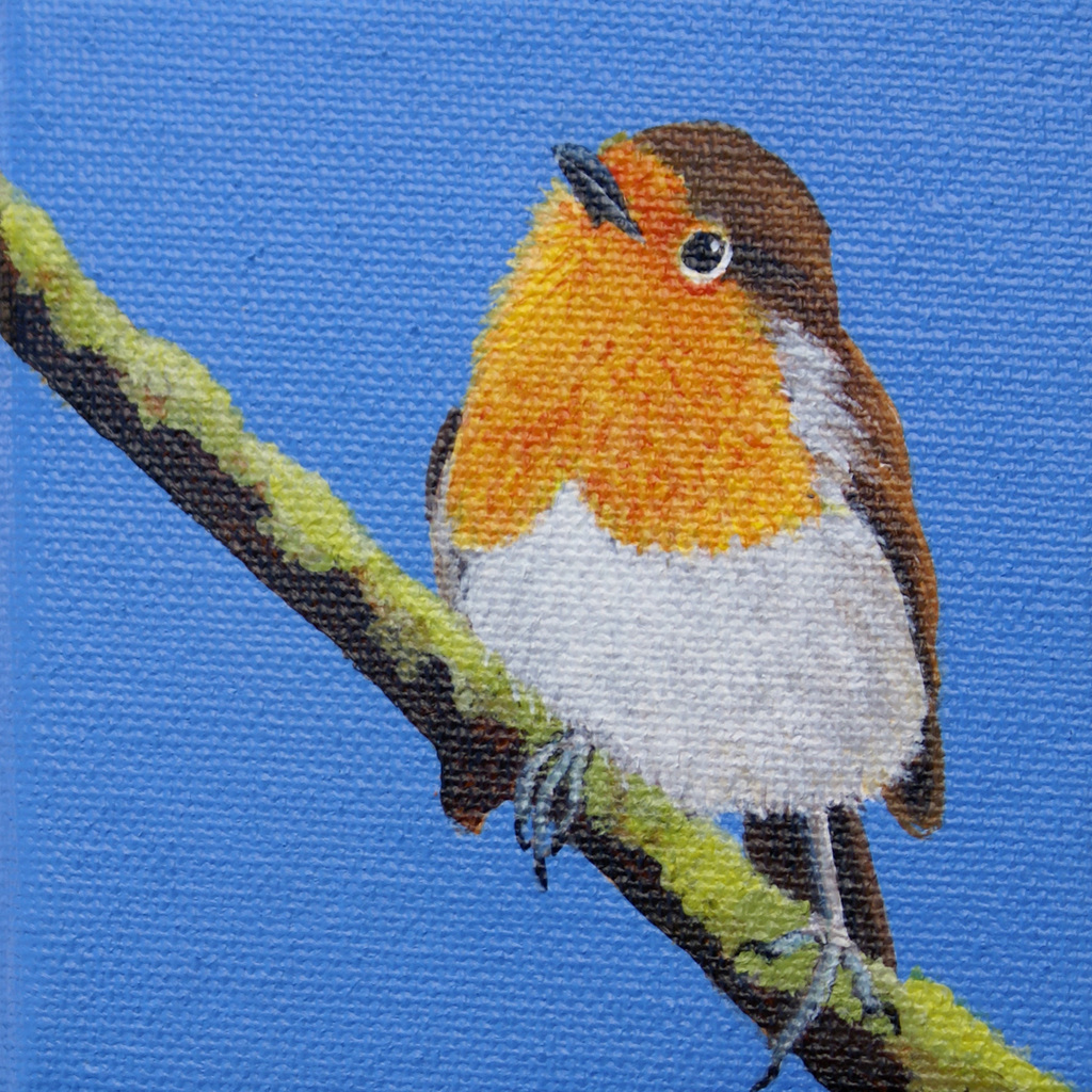 Acryl Vogel Painting Acrylic Schilderijtje Roodborstje Miniatuur Robin Miniature