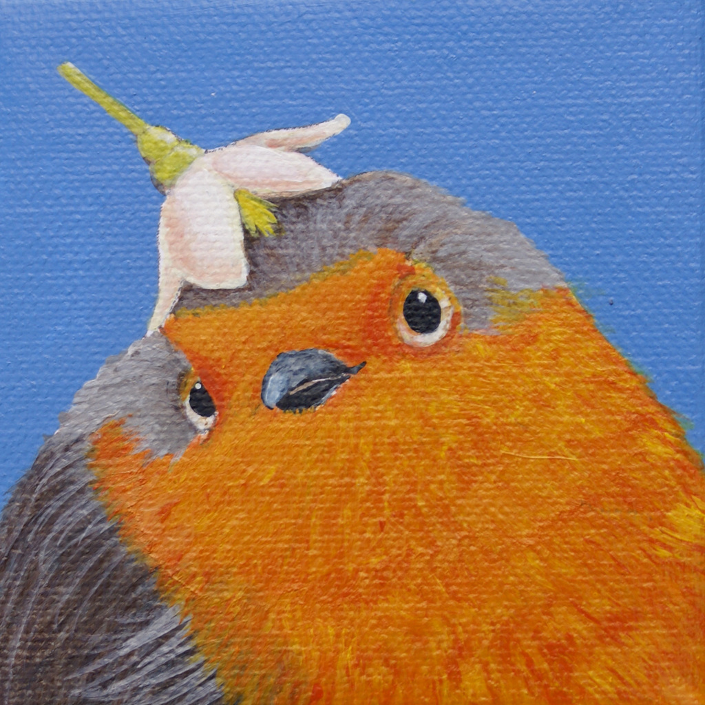 Acryl Vogel Painting Acrylic Schilderijtje Roodborstje Miniatuur Robin Miniature