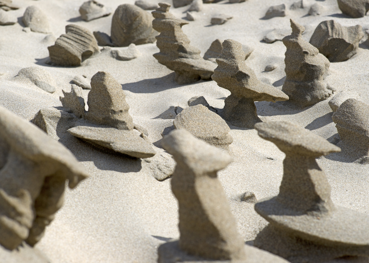Zand ruïnes, in werkelijkheid 10 tot 15 cm. hoog.