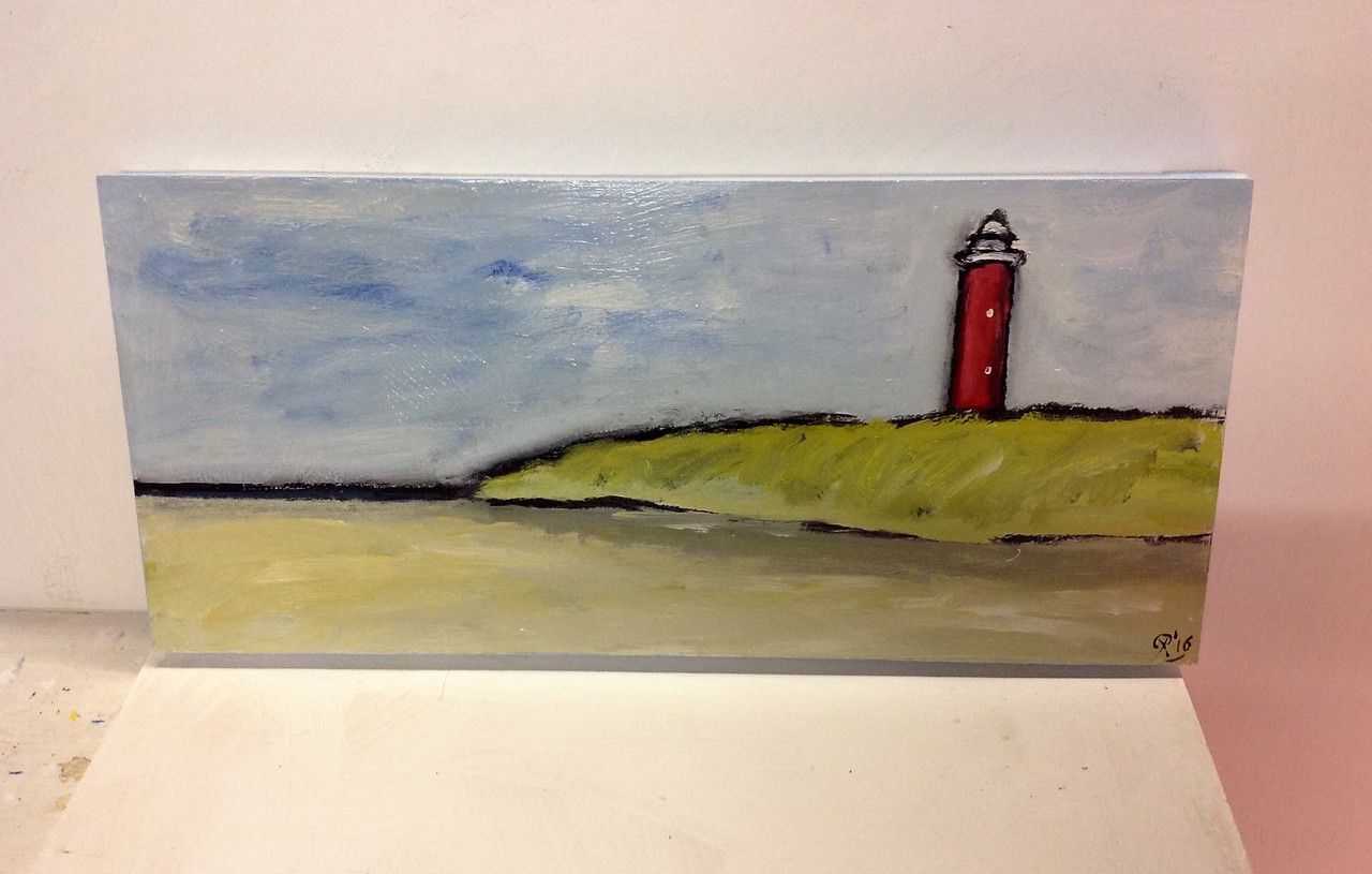 Vuurtorenschildering 30 x 60 x 2 cm. VERKOCHT.
