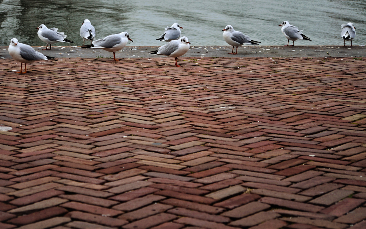 De zeemeeuwen aan de Rijnkade in Arnhem