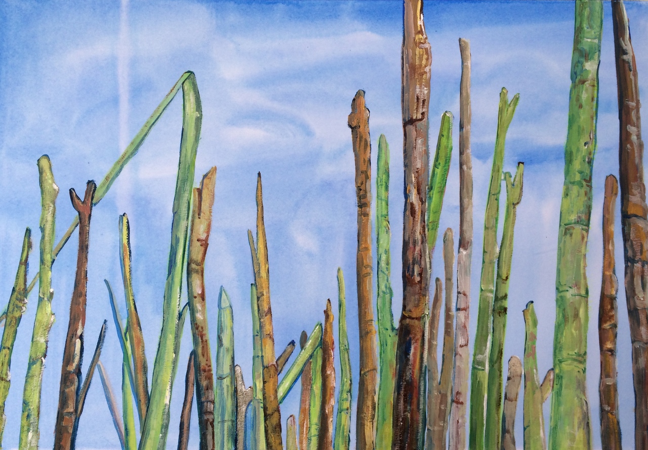 Geel Blauw Acryl Yellow Bruin Blue Papier Lucht Brown Sky Paper Koolzaad Acrylics Field Stoppelveld Sticks