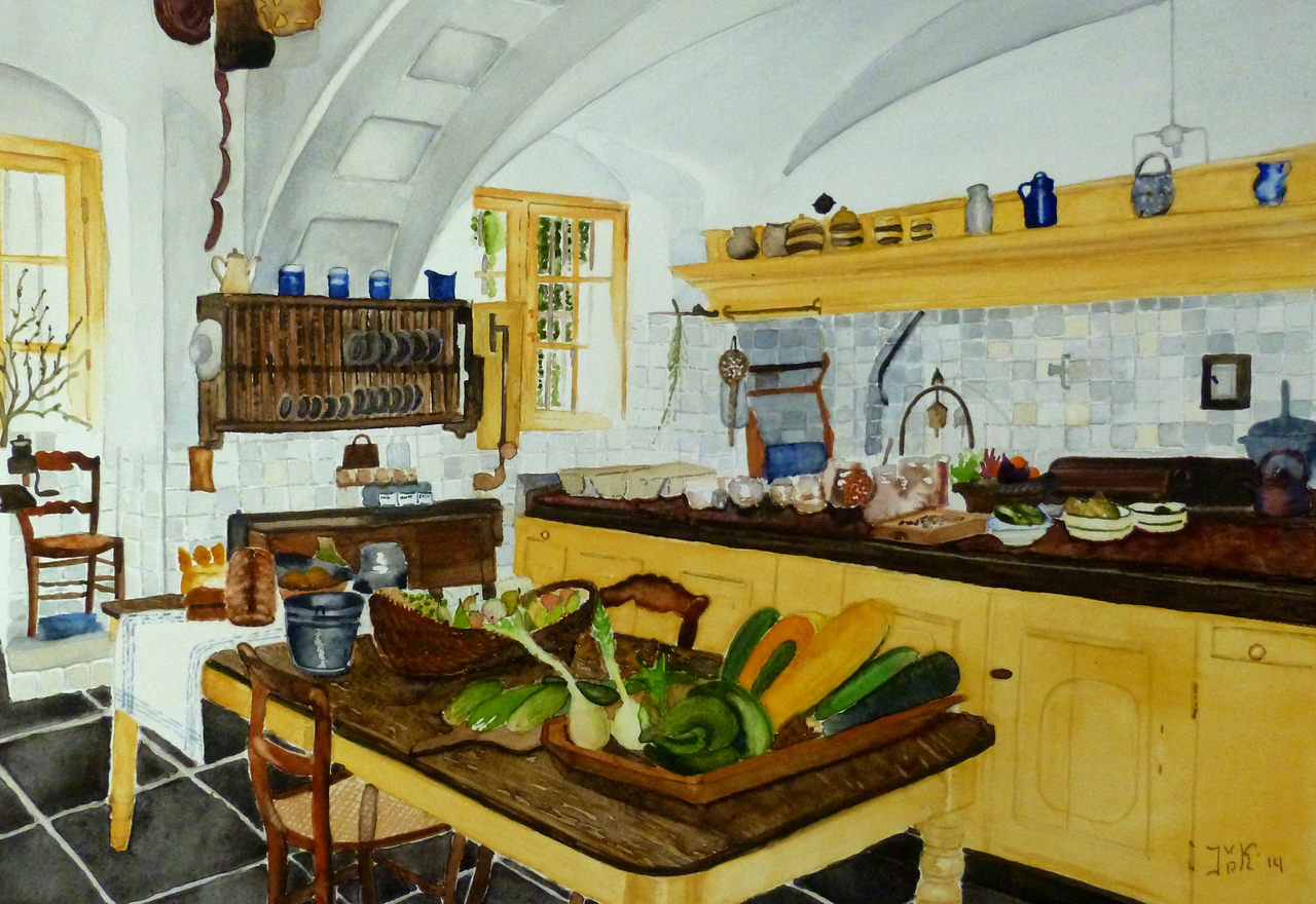 Zicht op het werkblad in de keuken van Kasteel Amerongen