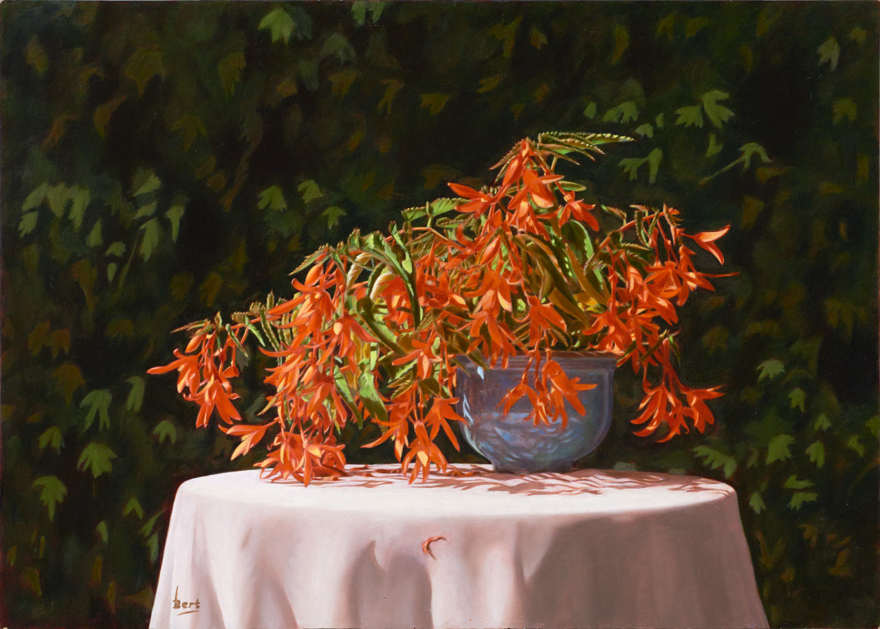 Bert de Vries (1950). Ik heb mijn hele leven getekend en geschilderd, altijd naast het werken. Ik ben deels autodidact, maar volgde ook vele cursussen. Sinds mijn pensioen eind 2014 ben ik full time kunstenaar. Ik heb gebeeldhouwd, maar schilder nu weer: portretten en stillevens. In mijn portretten zoek ik het karakter in al zijn nuances. Ik houd van heldere composities. Het meest boeiend vind ik de laatste fase van het werk waarin compositie, tonen en kleuren tot eenheid komen en diepte en eenvoud ontstaan.