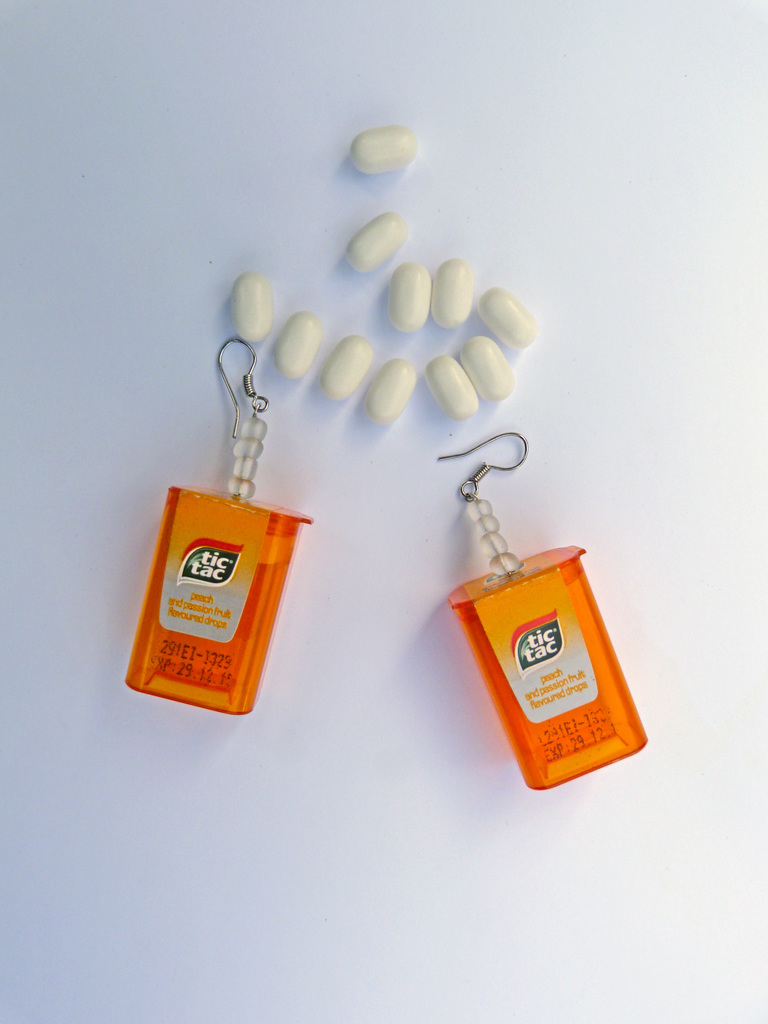 oorbelllen van mini tictac doosje met 1 tictacje er in