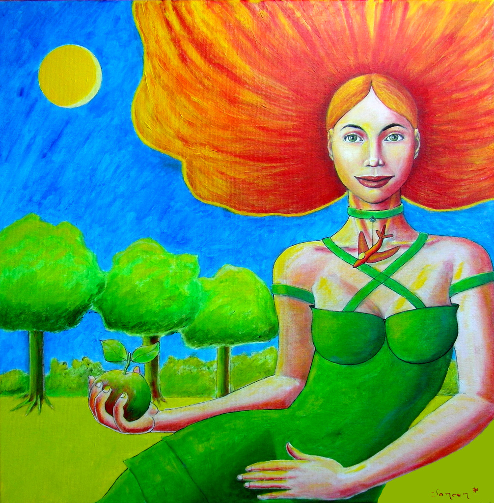 Zon Vrouw Naakt Hand In Bomen Appel Acryl Verleiding