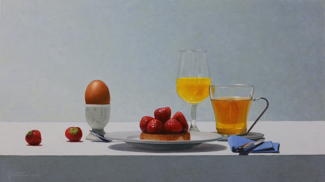 Schilderij Realistisch Painting Thee Ei Ontbijt Vissers Aardbeien Realistic Aardbei Beschuit Geertruid Bertvissers