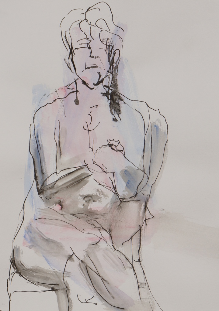 Aquarel Tekening Inkt Naaktmodel Pentekening