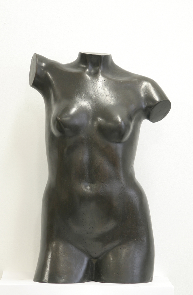 Een bronzen vrouwentorso, 70 cm hoog