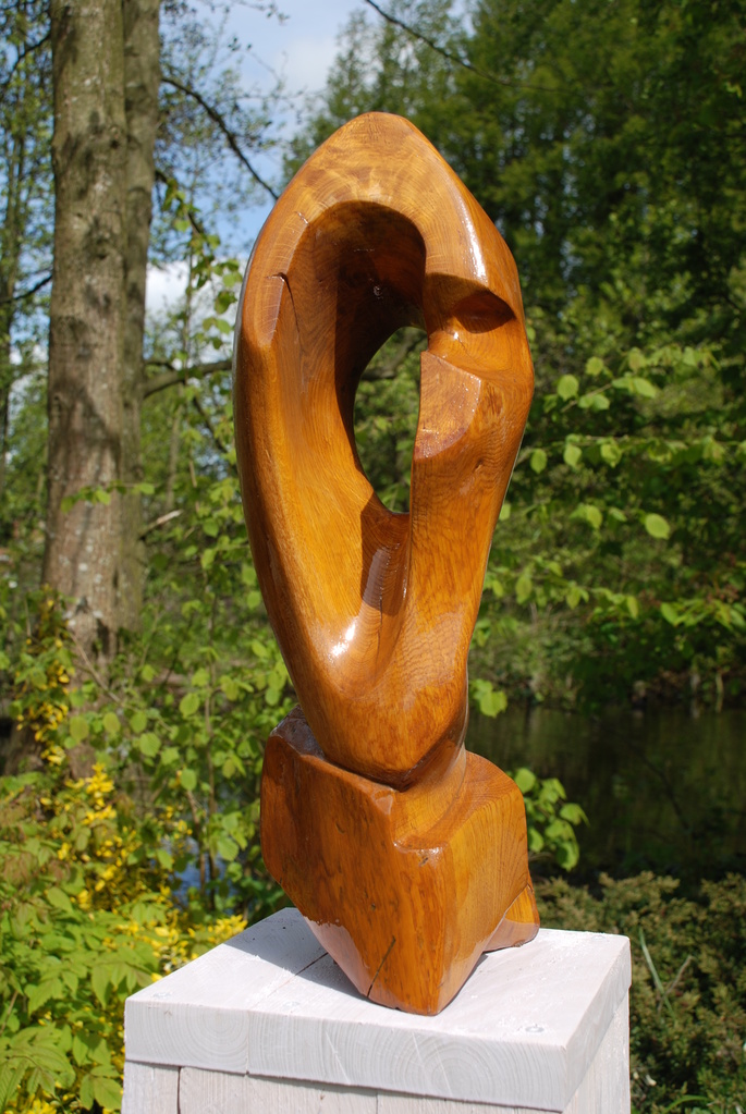 Het natuurlijke levendige van hout is voor mij de uitdaging. Het liefst werk ik "en taille directe". Zoeken in het hout. Hoe om te gaan met de kwasten? Hoe mee te gaan met de jaarringen? Opgenomen worden in die spelingen van de natuur. Dan een harmonieuze intrigerende sculptuur te maken. Met alles wat er door de natuur al in gebakken was.