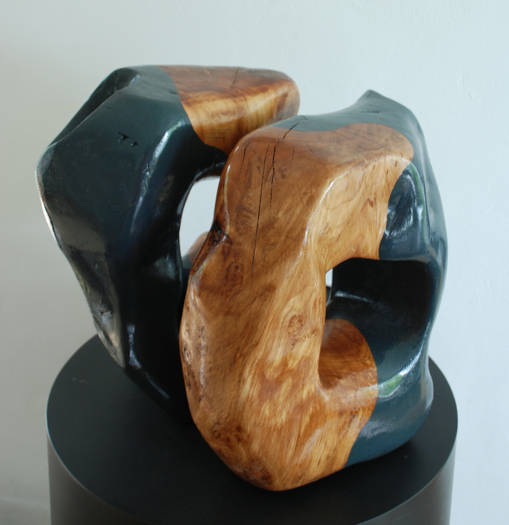 Het natuurlijke levendige van hout is voor mij de uitdaging. Het liefst werk ik "en taille directe". Zoeken in het hout. Hoe om te gaan met de kwasten? Hoe mee te gaan met de jaarringen? Opgenomen worden in die spelingen van de natuur. Dan een harmonieuze intrigerende sculptuur te maken. Met alles wat er door de natuur al in gebakken was.