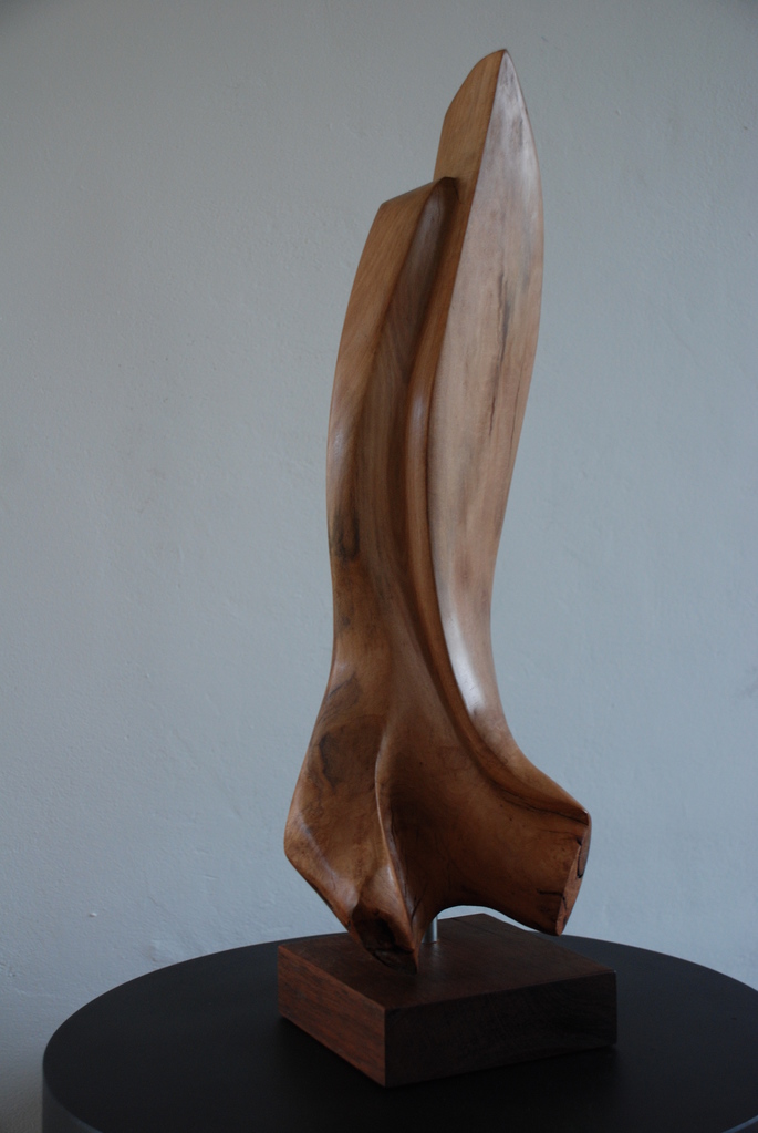 Het natuurlijke levendige van hout is voor mij de uitdaging. Het liefst werk ik "en taille directe". Zoeken in het hout. Hoe om te gaan met de kwasten? Hoe mee te gaan met de jaarringen? Opgenomen worden in die spelingen van de natuur. Dan een harmonieuze intrigerende sculptuur te maken. Met alles wat er door de natuur al in gebakken was.