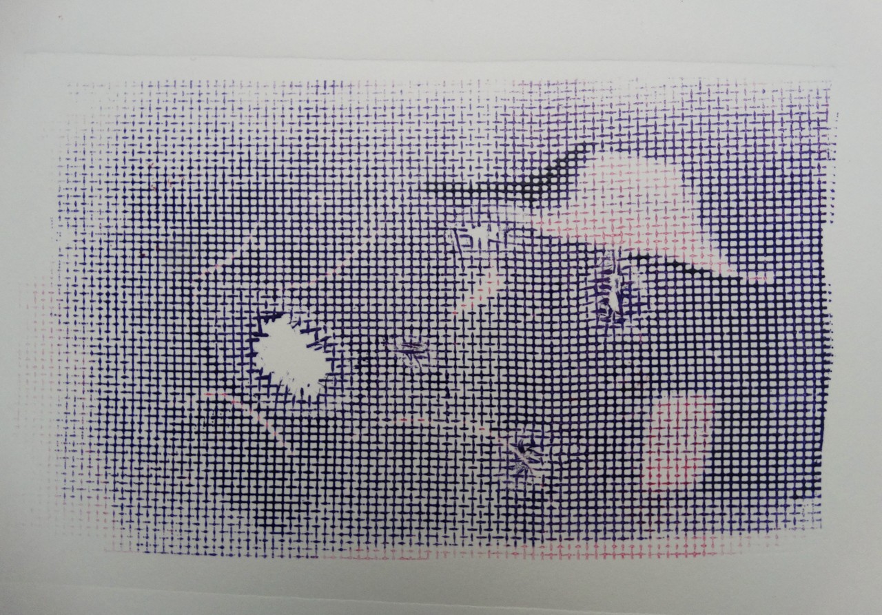De schijnbare strukturen / kunnen op verscheidene wijzen / worden verklaard. (monoprint, 32x24 cm)