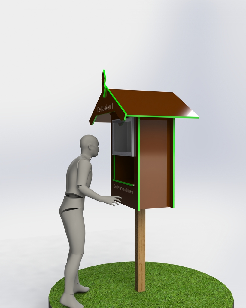 Kunst in de openbare ruimte. Opdracht van gemeente Ouderkerk (maart 2014) voor een kunstwerk voor de dorpskern Lageweg, uit te voeren alleen of in combinatie met lokale medekunstenaars, als afscheidscadeau van de gemeente aan de inwoners van Lageweg. Uitgevoerd oktober 2014-15 december 2014 ism Stella Speksnijder. Het gaat om een wandelbibliotheek genaamd Boekentil langs het schelpenpad bij de overgang naar Lageweg en twee Open Schilderijlijsten, waarbij de lijst is beschilderd door leerlingen van de basisschool van Lageweg. Foto's van Jan Trouwborst.