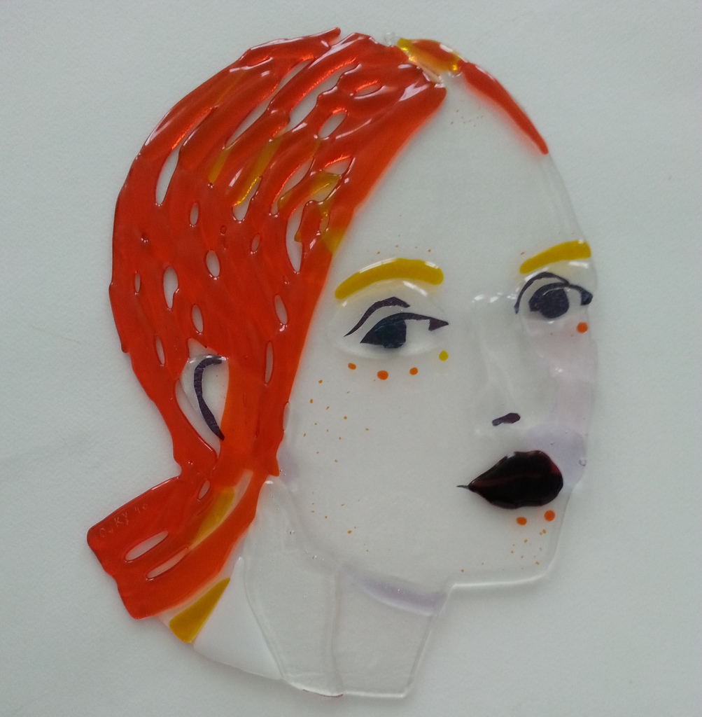 Meisje Rood Portret Glas Koper Glaskunst Portrait Red Girl Haar Hair Glass Brass Glassart Scheltema Bullseyeglass Louky Loukyscheltema