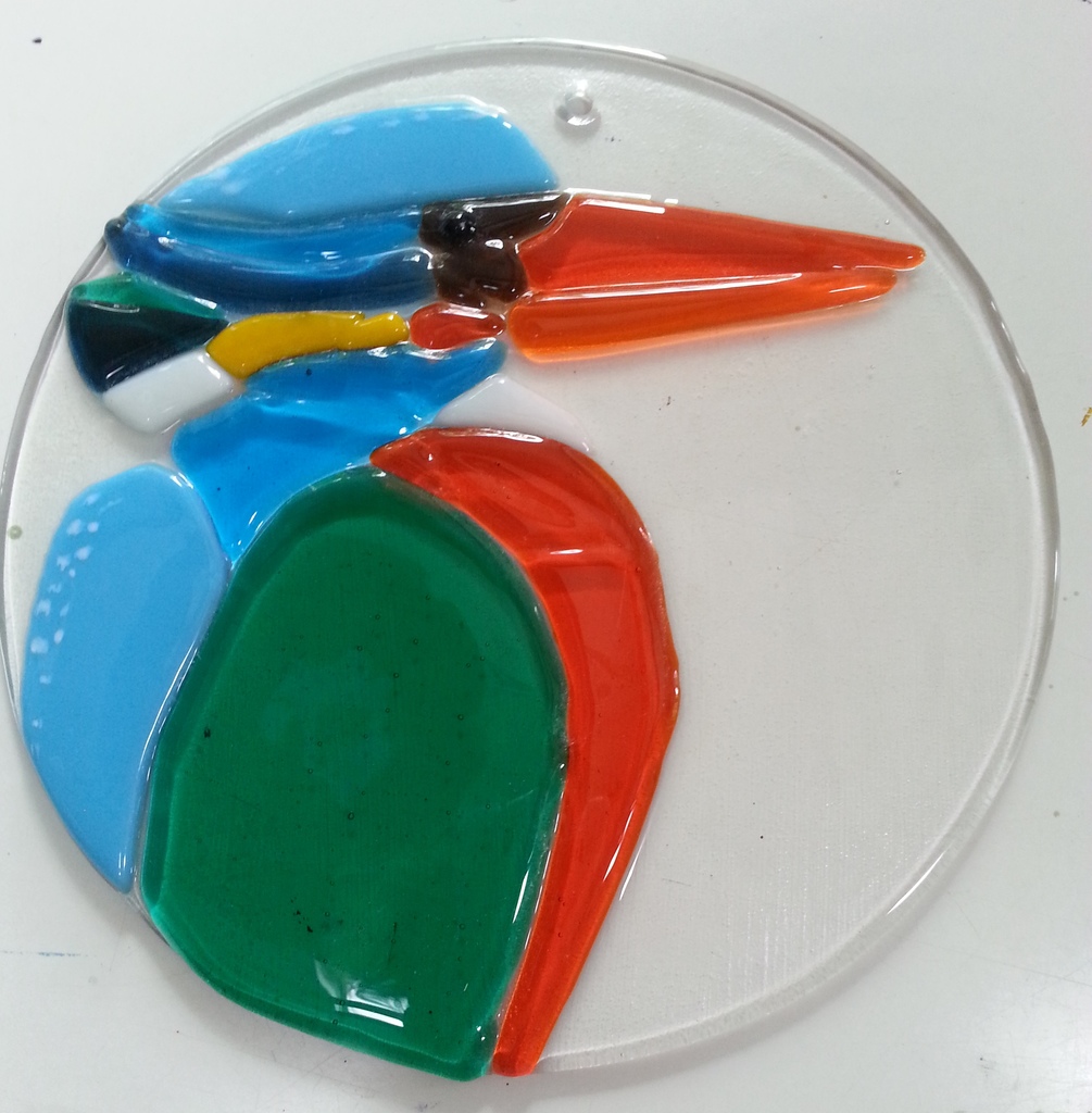 Glas Glaskunst Rond Ijsvogel Glass Kingfisher Round Glassart Raamhanger Scheltema Bullseyeglass Louky Loukyscheltema Windowhanging