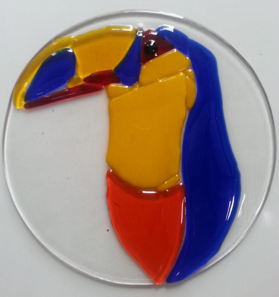 Glas Glaskunst Rond Glass Toekan Round Glassart Tucan Raamhanger Scheltema Bullseyeglass Louky Loukyscheltema Windowhanging